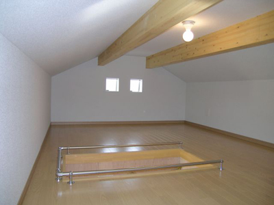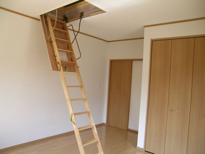 子供部屋に屋根裏収納を設けました。